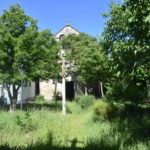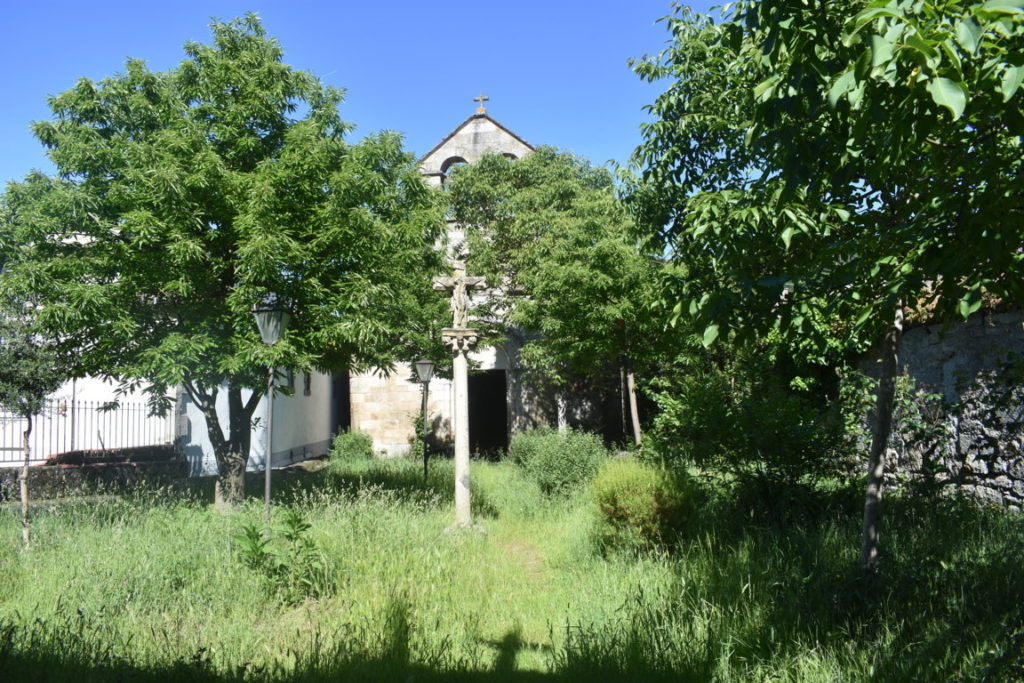 Cerrada y por el aspecto del jardín exterior, hace mucho tiempo. Aunque curiosamente la puerta de la iglesia sí estaba abierta.